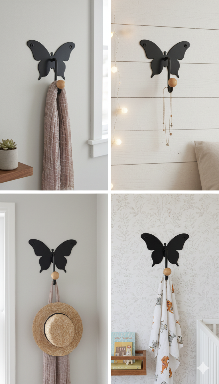 O Gancho Borboleta é uma peça que traz leveza e poesia à decoração.