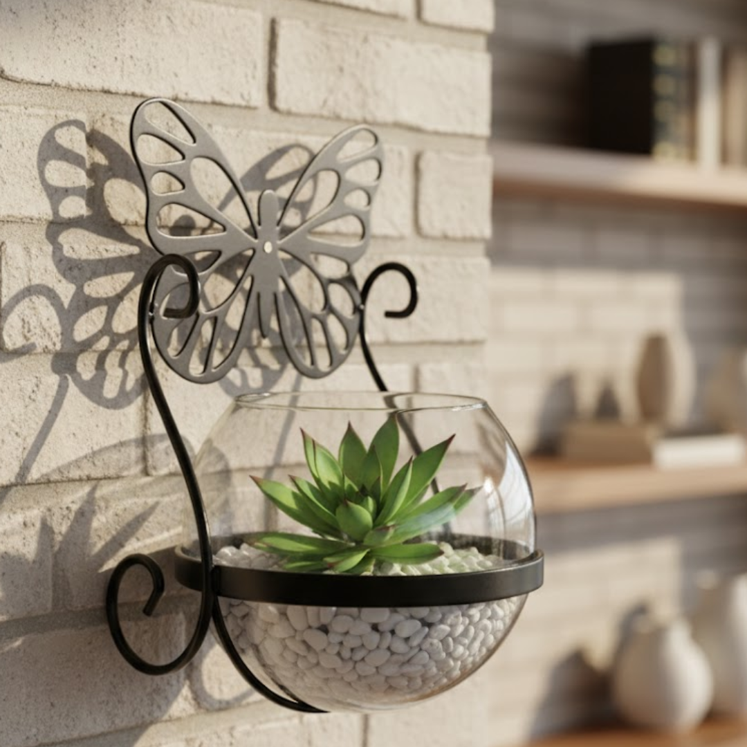 O Suporte de Plantas Borboleta 02 encanta pelo equilíbrio entre arte e natureza.